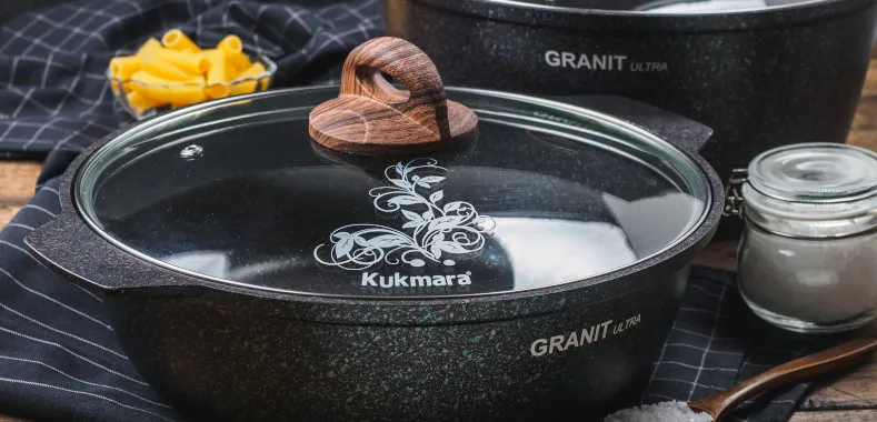 Кастрюля – один из самых популярных и часто используемых предметов посуды, который есть на каждой кухне. Чаще всего кастрюли используются для варки. Диаметр дна кастрюль редко сильно отличается от высоты стенок, что позволяет добиться оптимального соотношения воды и продуктов при варке. Кастрюли Kukmara также хорошо подходят для тушения и томления, так как имеют отличные теплораспределительные и теплоаккумулирующие свойства – блюда в них получаются сочными и ароматными. В литых кастрюлях с антипригарным покрытием Kukmara удобно делать предварительную обжарку.